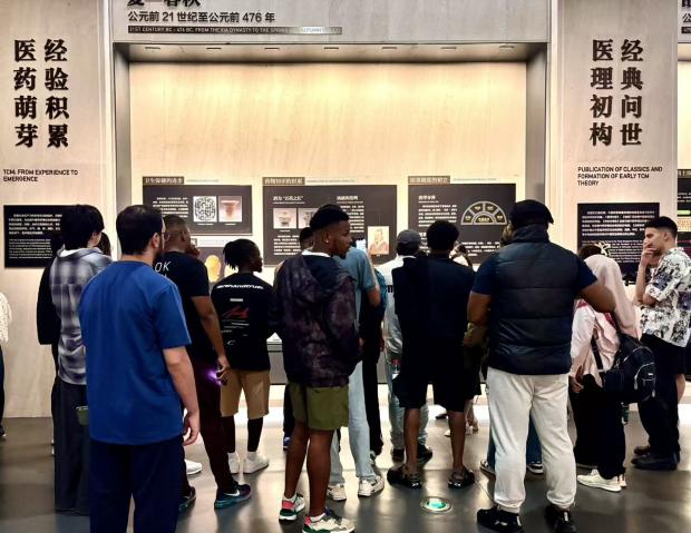 10月18日,留学生们抵达被誉为“中国药都”的樟树市,参观了国内规模最大的中医药主题博物馆——中国药都中医药博物馆。馆内丰富的藏品与详实的史料,系统展现了中国中医药从起源、传承到创新发展的辉煌历程。随后,一场别开生面的中医体验活动将现场气氛推向高潮。在专业医师的指导下,留学生们亲身体验了中医“望闻问切”的把脉诊疗与精妙的正骨手法。部分来华留学生们在体验后惊叹:“中医的诊断如此精准,医师通过脉搏就准确说出了我近期的睡眠问题,正骨手法也迅速缓解了我脖子的不适。我第一次如此直接地感受到中医的博大精深与切实的疗效。”这场沉浸式体验,让来华留学生们从文化的观察者转变为深度的体验者,深刻感悟到中医药的深厚底蕴与实践价值。
