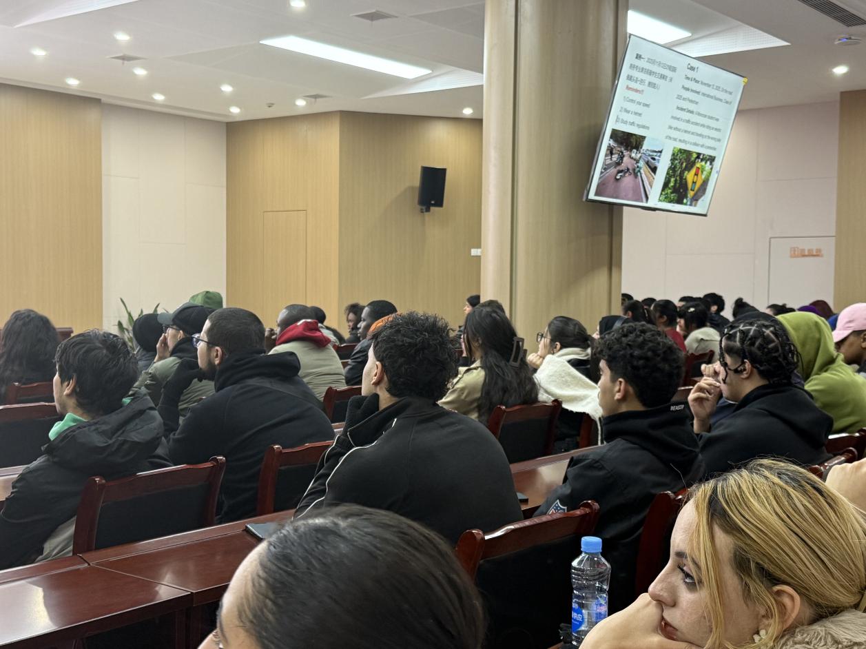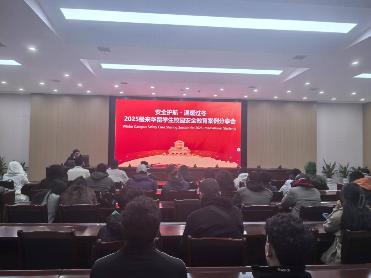 为切实筑牢留学生校园安全防线,11月20日,海外教育学院在蛟桥园北区学术报告厅举办2025级来华留学生冬季安全教育大会。海外教育学院副院长许韬主讲,全体2025级来华留学生参会。