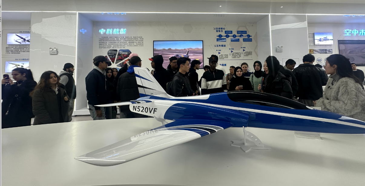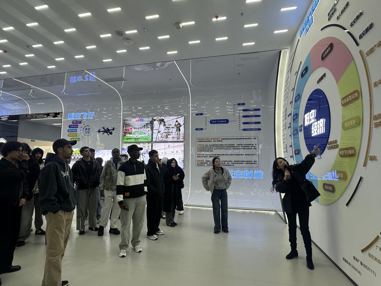随后,师生一行前往共青城参访。在南湖通航机场,来华留学生们观摩了江西低空产投运营,对低空经济这一新兴业态有了直观认识。随后,在共青城低空经济产业园,他们深入了解了江西省为打造全国低空经济发展高地所构建的产业布局与全产业链发展雄心。从无人机研发制造到低空文旅、物流等场景应用,园区展现出的创新活力令来华留学生们印象深刻。
