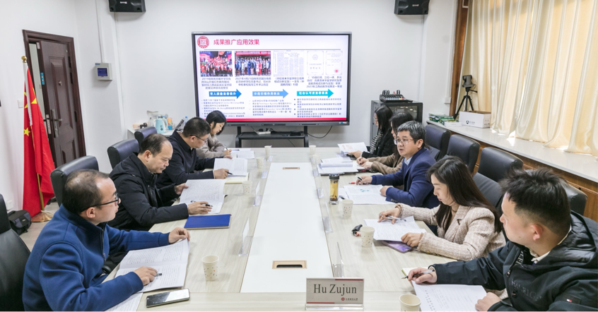 围绕申报主题、核心内容与实践成效,黄先明代表袁红林副校长汇报当前工作进展、专家评审意见及后续优化计划。