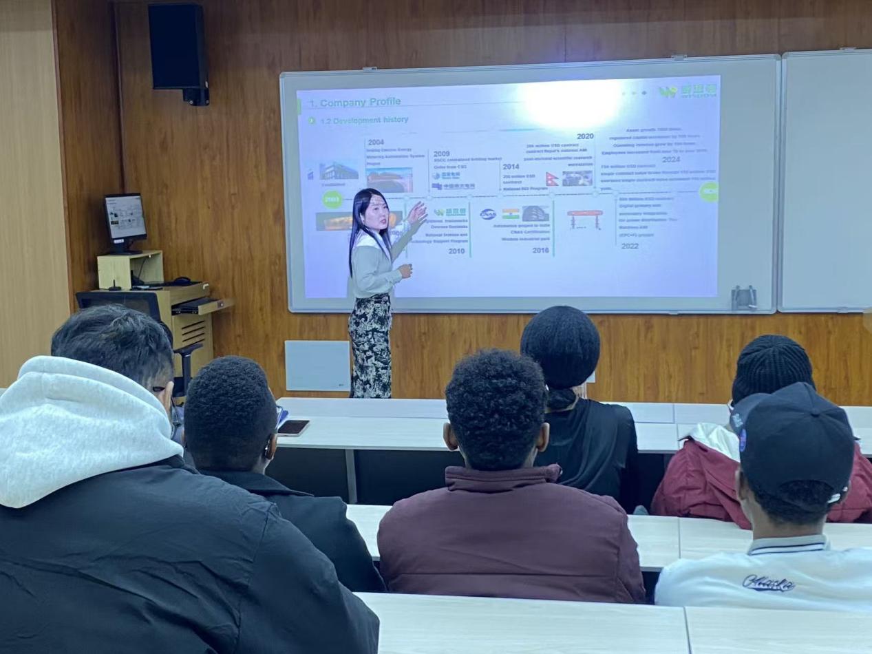 宣讲会上,徐芳经理结合企业发展实际,围绕企业概况、核心业务布局、全球市场拓展、核心技术优势、专项人才需求及海外岗位职业发展路径等核心内容,为在场留学生展开全方位介绍。她重点解读了公司在智能电网、智慧能源、数字工业等前沿领域的核心技术成果与行业领先地位,细致分享了企业在中国香港、澳门、泰国、尼泊尔、摩洛哥、尼日利亚等多个国家的海外项目落地案例与实践经验,让留学生们直观感受中国高新技术企业在国际市场上的硬核国际竞争力。